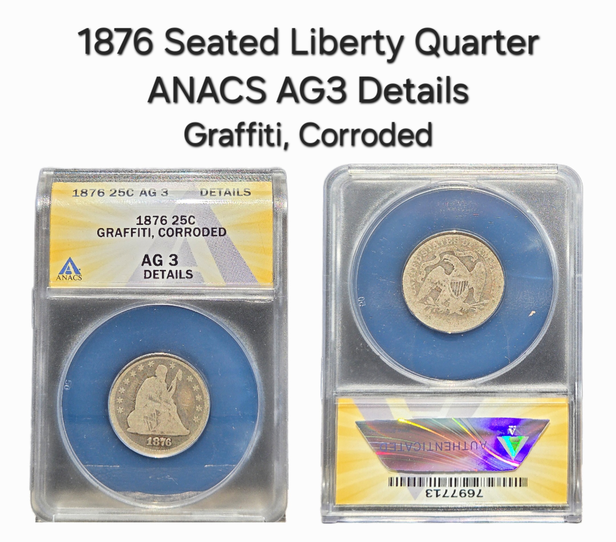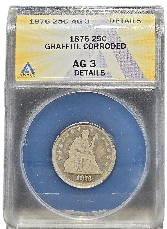 1876 Seated Liberty Quarter ANACS AG3 Details