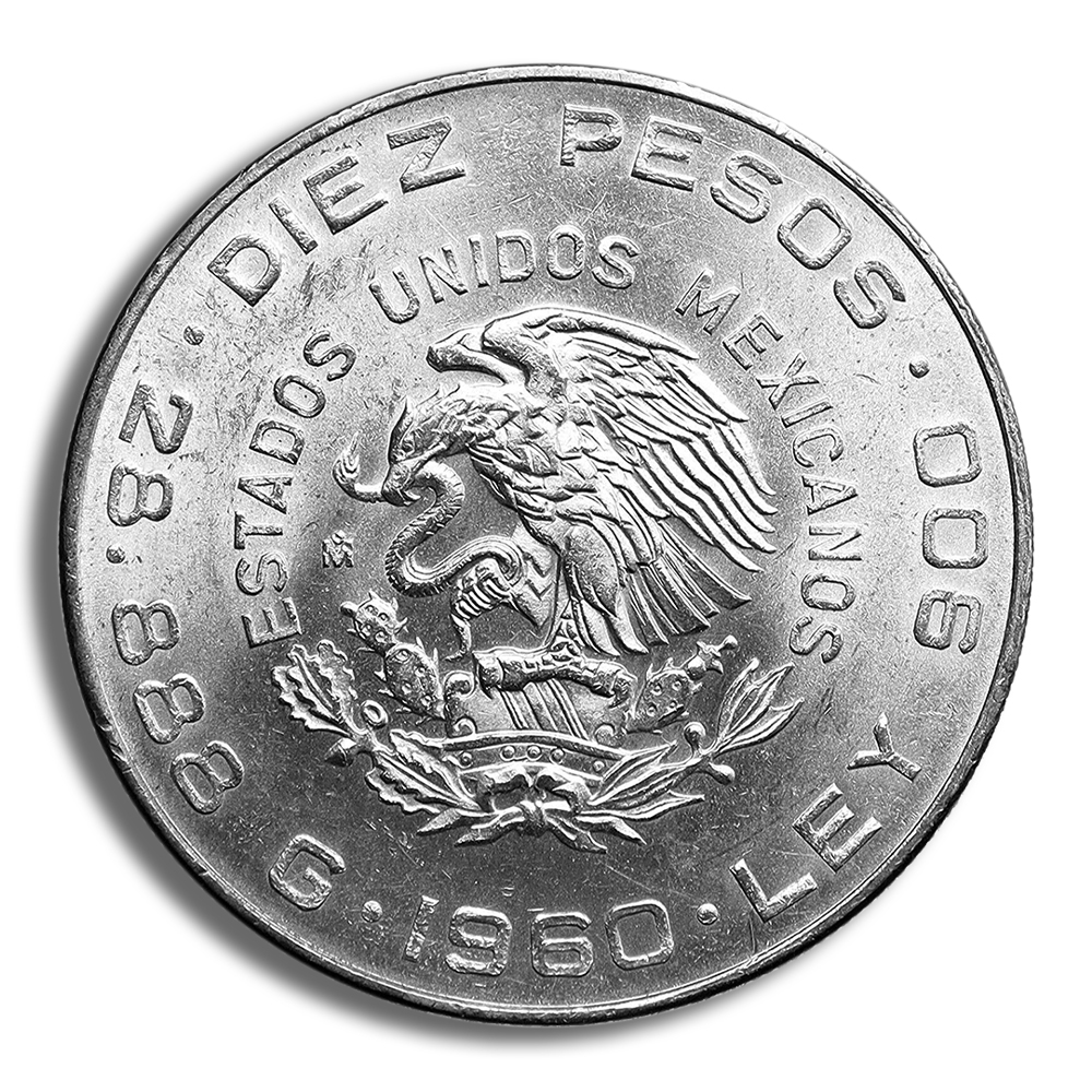1960 Mexico 10 Pesos 150th Anniversary Silver Coin (Avg Circ)